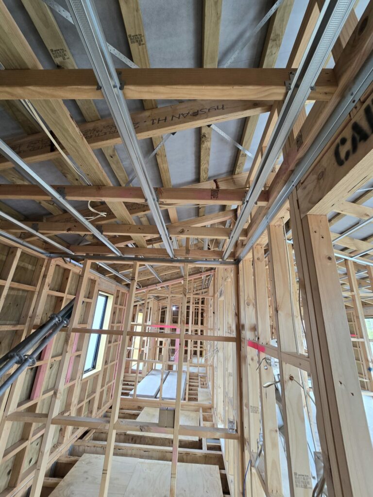 More Auckland homeowners and builders are choosing light-gauge steel for interior framing in new homes. Steel studs are dimensionally consistent from the first wall to the last, meaning less rework and cleaner finishes. They’re also termite-proof, non-combustible, and won’t contribute to mould growth, important factors in Auckland’s humid climate. We work closely with your builder or architect to frame walls and ceilings to plan, ensuring every room is square, level, and ready for lining on schedule.